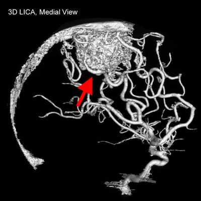 Что выявляет КТ-ангиография. Патологическая извитость внутренних сонных артерий в шейном сегменте (С1). Хорошо виден ход сосудов, можно оценить их диаметр, состояние стенок. Трехмерная (3D) реконструкция сосудов.