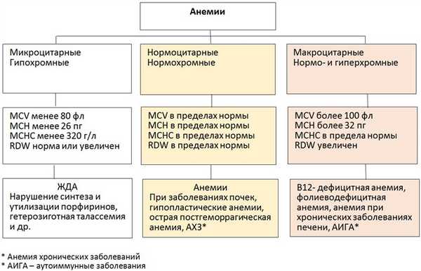 Алгоритм дифференциации анемии по эритроцитарным индексам