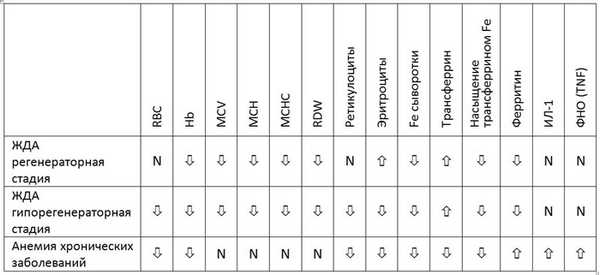 Дифференциальная диагностика анемии хронических заболеваний и железодефицитной анемии