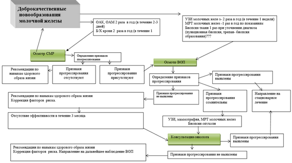Данные осмотра, пальпации и значительная часть субъективных симптомов, выявляемых при объемных образованиях молочных желез, неспецифичны, могут встречаться и при доброкачественных, и при злокачественных процессах. Поэтому основной задачей диагностического этапа является исключение онкопатологии и определение типа неоплазии для выбора адекватной тактики лечения. В ходе диагностики наиболее информативны следующие методы: