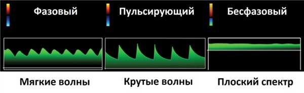 Спектр в венах фазовый — мягкие волны; в артериях пульсирующий — резкие перепады; безфазовый поток с постоянной скоростью.
