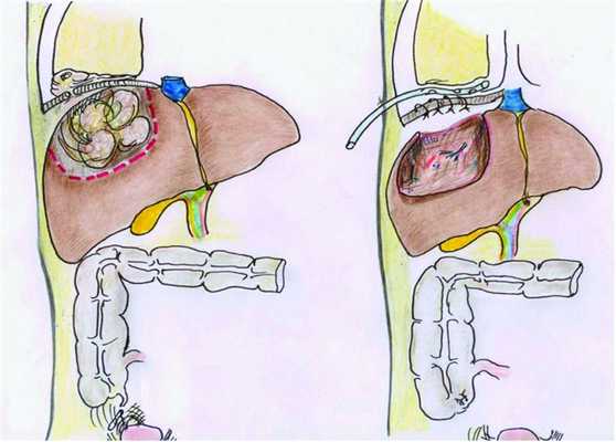Местная анестезия, которую применяли при пункционном лечении, является вполне достаточной. Место пункции зависит от пораженного сегмента печени, но чаще ее проводили по задней подмышечной линии. Нами был использован также добавочный доступ в XI-X межреберье между передней и средней подмышечными линиями справа для проведения пункционной манипуляции для более качественного промывания при полостях большого размера. Во время манипуляции производили максимальное удаление гноя из полости с последующим промыванием полости дезинфицирующим раствором (хлоргексидином, диоксидином). В послеоперационном периоде проводили антибактериальную, дезинтоксикационную и направленную на общее укрепление организма терапию.