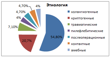 Этиология абсцессов печени в клинической группе
