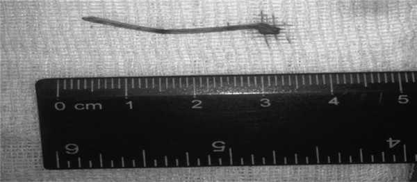 Рис. 8. Пациент П. Извлеченное инородное тело желудка (кость) .