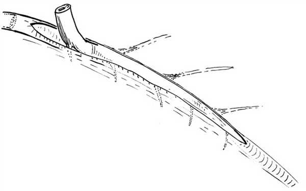 4. Проведение иглы строго «снаружи—внутрь» на шунте и «изнутри—наружу» на коронарной артерии.