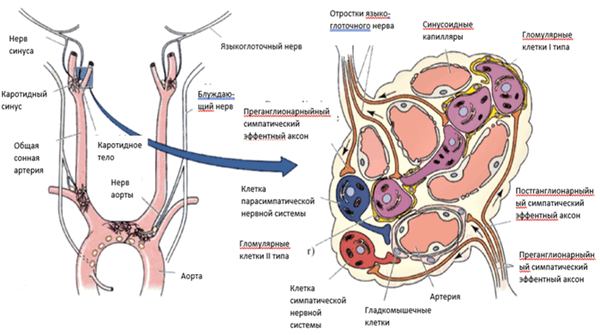 Схема строения и иннервации каротидного тела представлена на рисунке 18.
