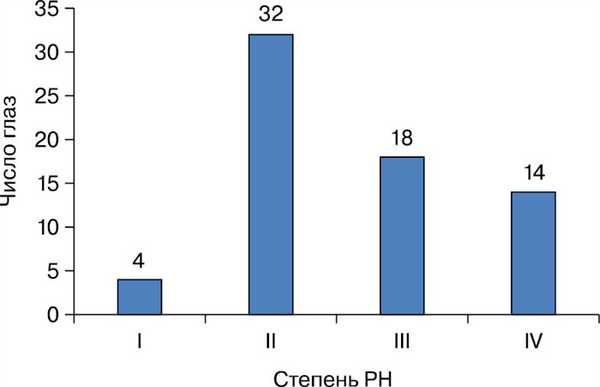 Рис. 1. Распределение глаз, включенных в исследование, по степени рубцовой РН.