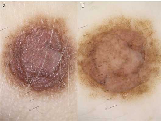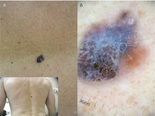 Данный случай демонстрирует характерные изменения клинической картины, дерматоскопические признаки меланомы кожи при отсутствии субъективных жалоб пациента.