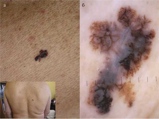 Пациентка А., 67 лет, пенсионерка, жительница села. Самостоятельно обратилась к дерматовенерологу по месту жительства. Со слов пациентки, полгода назад отметила субъективные ощущения по типу парастезии пигментного невуса в области спины.