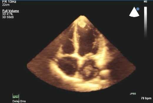 Миксома. Эти доброкачественные опухоли встречаются редко и обнаруживаются в предсердиях или желудочках. Они студенистые и рыхлые (кусочки могут отрываться и эмболизировать). Основные ЭхоКГ признаки миксомы
