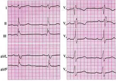 ЭКГ картина при полной блокаде ножек пучка Гиса соответствует признакам АВ-блокады той или иной степени.