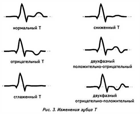 1) Существенными электрокардиографическими признаками ишемии миокарда являются разнообразные изменения формы и полярности зубца Т.