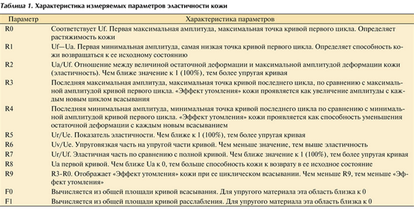 Таблица 1. Характеристика измеряемых параметров эластичности кожи
