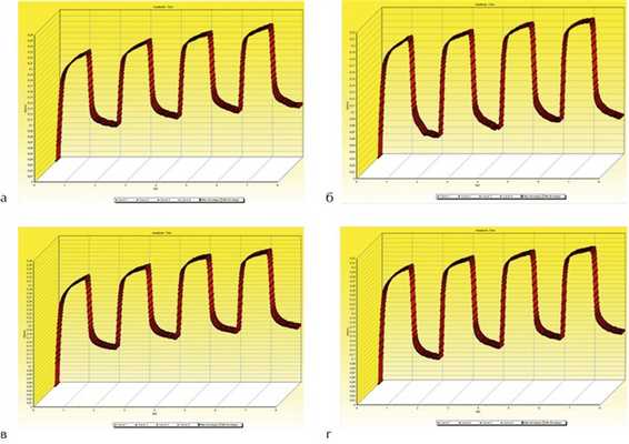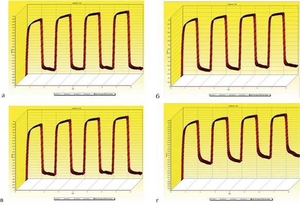 Рис.4. Повторные циклы эластометрии кожи шеи у пациенток 23 лет (а); 33 лет (б); 49 лет (в) и 58 лет (г).