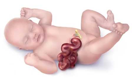 Омфалоцеле - порок развития передней брюшной стенки, при которой органы брюшной полости выходят за ее пределы в составе грыжевого мешка через грыжевые ворота расширенного пупочного кольца.
