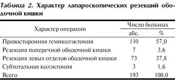 В ГНЦ колопроктологии с 2004 по 2010 г. ручная ассистенция была использована в ходе лапароскопических операций у 193 больных раком ободочной кишки.