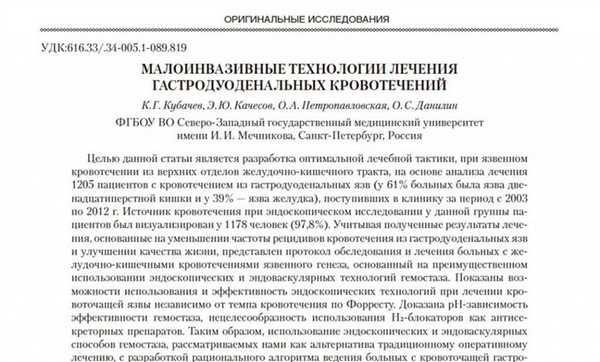 Статьи: МАЛОИНВАЗИВНЫЕ ТЕХНОЛОГИИ ЛЕЧЕНИЯ ГАСТРОДУОДЕНАЛЬНЫХ КРОВОТЕЧЕНИЙ