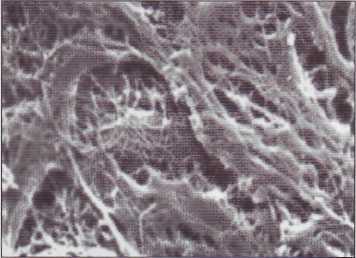 В состав субэндотелиальной базальной мембраны (рис. 12) входят различные типы коллагена, фибронектин, витронектин, ламинин, про-теогликаны, гликозаминогликаны, тромбо-спондин, фактор Виллебранда, а в местах повреждения и воспаления - фибрин. Большая часть этих компонентов синтезируется и секре-тируется эндотелиальными клетками, однако перициты и ГМК также вносят свой вклад в формирование внеклеточного матрикса. Внеклеточные белки субэндотелия играют важную роль в межклеточном взаимодействии, формировании скелета сосуда, процессе клеточной адгезии, репарации и росте сосудов.