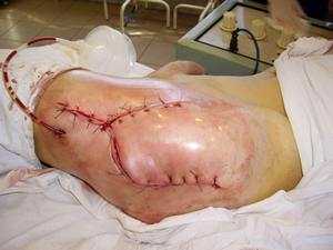 - Гнойный процесс в области закрытой лоскутом раны может наблюдаться при недостаточном очищении раны до пересадки. Обычно требует аккуратного дренирования и использования антибиотиков. При грамотном лечении раневой процесс удается купировать и в последующем лоскут хорошо приживается.
