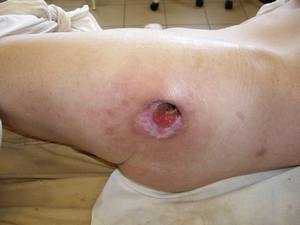 Рис. 4. Длительно существующий пролежень в области седалищного бугра.