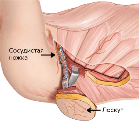 Метод основан на заборе из определенного места тела кожного лоскута с сосудами, которые его кровоснабжают, с последующим соединением этих сосудов с артерией и веной поблизости от кожного дефекта, с тем чтобы лоскут закрыл этот дефект.