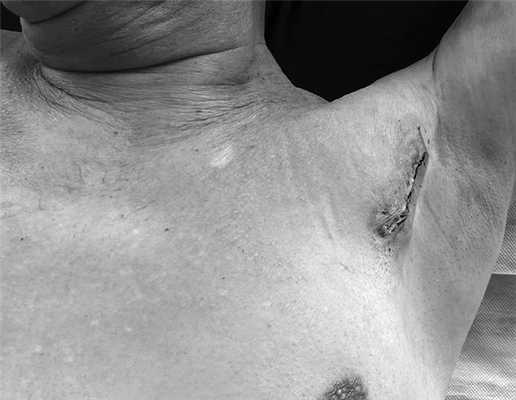 Рис. 6. Зона оперативного вмешательства и формирующийся послеоперационный рубец (послеоперационная фотография).