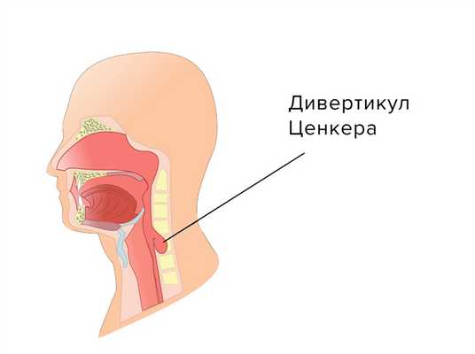 Дивертикул Ценкера - выпячивание слизистой оболочки в начальном отделе пищевода - глоточно-пищеводном переходе. Дивертикул возникает из-за слабости мышечной стенки пищевода. При проглатывании пищи в пищеводе возрастает давление и пищевой комок движется в сторону наименьшего сопротивления - в дивертикул, что приводит к растяжению слизистой и увеличению размеров дивертикула.