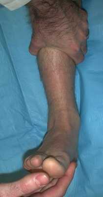 Стопа при этом становится похожа на подушку, нередко в этом периоде (от 6 часов до 7 суток от травмы) из за выраженного отёка эпидермис может отслаиваться с формированием фликтен. Если это произошло, оптимальной тактикой может быть временный переход на аппарат внешней фиксации - в котором смещение таранной кости устраняется, а операцию сделать отсроченно после спадения отёка через 7-14 дней.