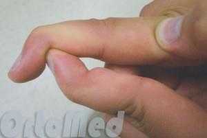 Эта деформация вызвана тем, что сухожилия сгибателей постоянно в тонусе и стремиться согнуть палец без противодействия разгибателя.