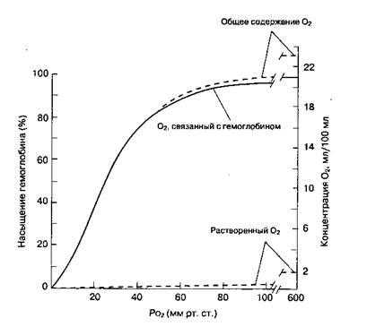 Последний для О2 составляет 0,0031/100 мл крови/ 1 мм. рт. ст.. Таким образом, 100 мл крови при PaO2, равном 100 мм. рт. ст., содержит менее 0,31 мл O2.