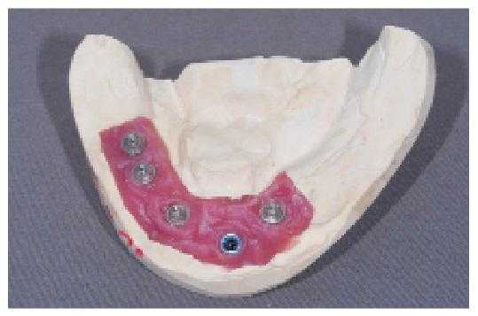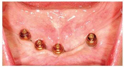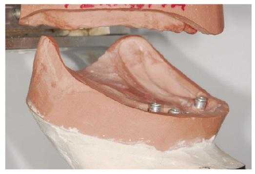 Фото 13. Соотношение челюстей по 3 классу. Резорбированный гребень нижней челюсти с установленными абатмент-локаторами.