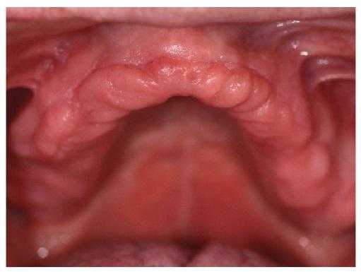 Фото 15. Значительная резорбция верхней челюсти с ороантральным соустьем.