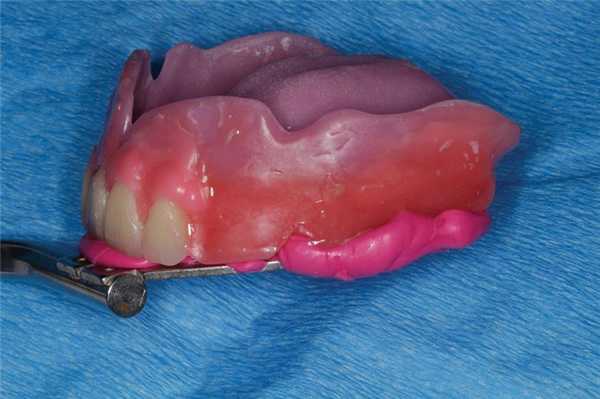 При последующих коррекциях, которые проводят сначала раз в 3 дня, а затем раз в неделю, определяют болезненные точки. Их выверяют с помощью гипсового порошка или зубной пасты на слизистой оболочке и переносят на протез, корректируют с последующим шлифованием и полированием.