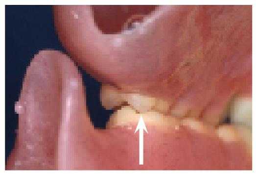 Фото 22. Пациенту было рекомендовано проталкивать пищу назад при откусывании.