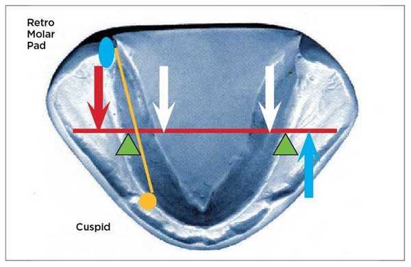 При разработке окклюзионных схем съемных протезов необходимо учитывать критерий обеспечения их относительной стабильности с учетом соотношения зубов-антагонистов. Контакт между дистальными зубами, особенно при значительной резорбции костного гребня, осуществляется в вертикальном направлении по каплевидной траектории движении. Окклюзионный контакт при закрытии рта должен быть ограниченным и смещенным лингвально, чтобы обеспечить максимально возможную стабилизацию конструкций съемных протезов.