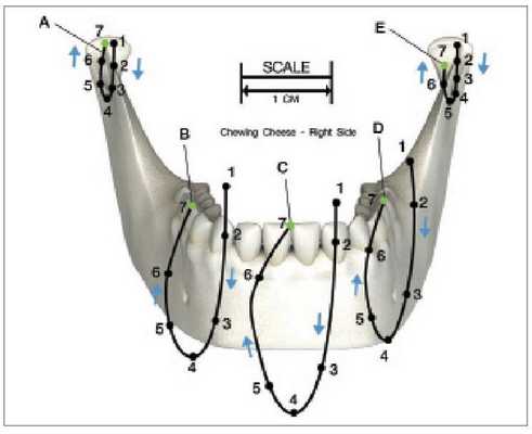 Фото 9. Трассировка движений готической дуги: в области пересечений устанавливается центральное соотношение.