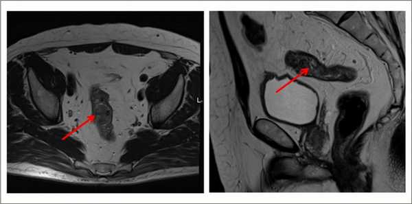 На фото рака прямой кишки можно заметить, что он значительно сужает просвет кишечника. Это является причиной запоров, переполненного живота, метеоризма.