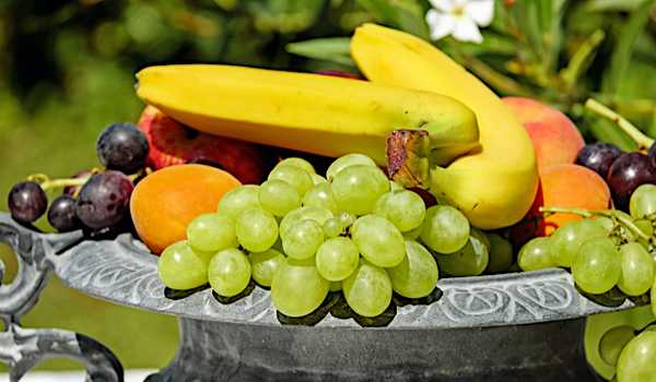 Сладкие фрукты: бананы, инжир, хурма, финики, сладкие сорта винограда и сухофрукты.