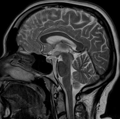 - МРТ головного мозга. На снимках МРТ визуализируется объемное образование однородной структуры с четкими контурами, которое не накапливает контрастное вещество, не имеет признаков инвазивного роста. При исследовании в режиме Т1 очаг является гипоинтенсивным, а в Т2-режиме — переменным гиперинтенсивным.