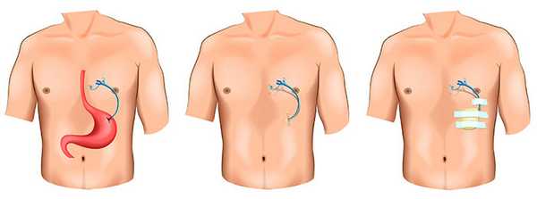 Существуют временные и постоянные способы наложения гастростомы. В первом случае в желудок устанавливается резиновый катетер диаметром не более 1 см, через который вводится жидкая или полужидкая пища. Такой метод является относительно простым, но сопровождается физическим и психологическим дискомфортом для пациента, что связано с постоянным нахождением трубки в просвете желудка.