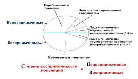Поскольку различия населения разных регионов по распределению восприимчивых и невосприимчивых несомненно влияют на развитие ЭП, мы считаем более уместным пользоваться термином «степень восприимчивости популяции» - соотношение в ней лиц восприимчивых и невосприимчивых к определенной инфекции (рис. 6.3), которое, по нашему мнению, более корректно, чем