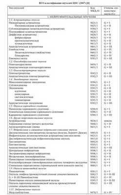 Таблица 1. ВОЗ - классификация опухолей ЦНС (2007) [4]