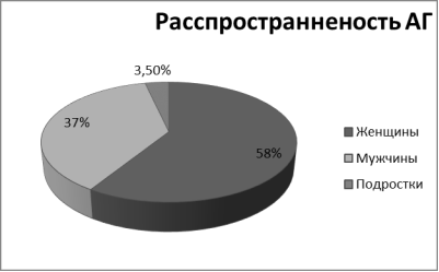 Распространенность артериальной гипертензии в Российской Федерации составляет 39,2 % среди мужчин, и 41,1 % у женщин [2]. Т.е ⅔ пациентов с артериальной