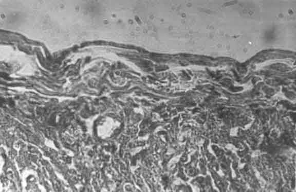 Из всех обследованных в 60 случаях (56,6%) последовал летальный исход вследствие развития несовместимых с жизнью осложнений. У всех умерших новорожденных проводили патоморфологическое исследование предсердий и желудочков включая эндокард, миокард и эпикард. Иссекались участки передней папиллярной мышцы левого желудочка, межжелудочковой перегородки и папиллярной мышцы правого желудочка. Фиксация материала проводилась по стандартной методике [5]. Тканевые срезы толщиной 7-12 мк окрашивали гематоксилин-эозином и по методу Ли [5]. Просмотр и фотографирование осуществляли как в проходящем, так и в поляризованном свете на микроскопе NU-5 (Karl Zeis, Jena, Германия).