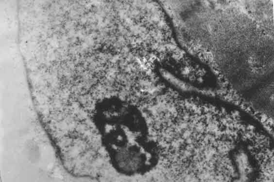 Ультраструктурное исследование субэндокардиальных слоев проводящих и сократительных кардиомиоцитов проводилось по общепринятой методике [6]. Ультратонкие срезы изготавливали на ультратоме LKB (Швеция). Просмотр и фотографирование производили на микроскопе УЭМВ-100Б (Россия).