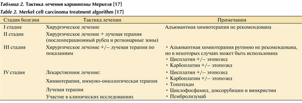 Таблица 2. Тактика лечения карциномы Меркеля [17]