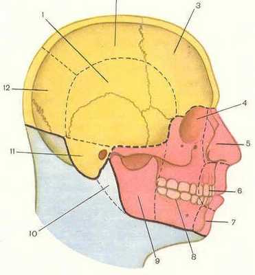 Рис. 4.1. Граница между мозговым и лицевым отделами черепа.