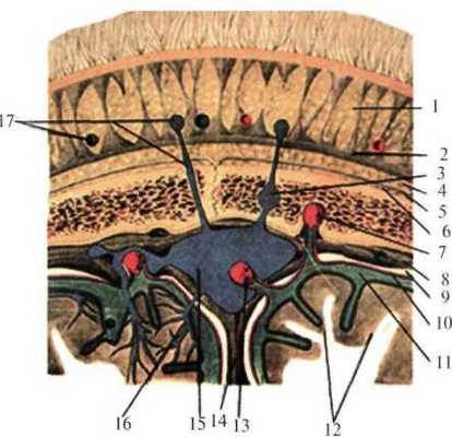 Венозная система свода черепа хорошо развита и располагается в три этажа.
