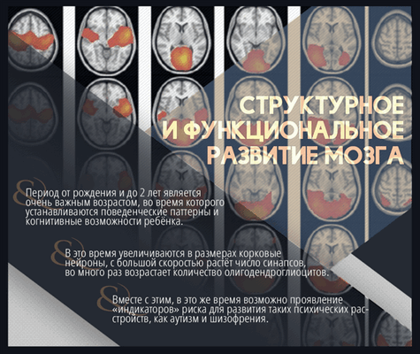 Период от рождения и до 2 лет является очень важным возрастом, во время которого устанавливаются поведенческие паттерны и когнитивные возможности ребёнка. В это время увеличиваются в размерах корковые нейроны, с большой скоростью растёт число синапсов, во много раз возрастает количество олигодендроглиоцитов. Вместе с этим, в это же время возможно проявление «индикаторов» риска для развития таких психических расстройств, как аутизм и шизофрения. Не смотря на всё важность данного периода в онтогенезе, мы мало, что знаем о нём.
