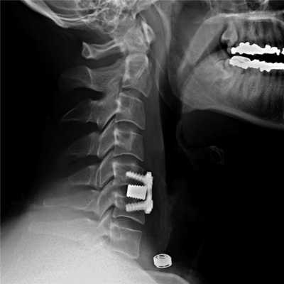 Импланты шейного отдела позвоночника на рентгене.